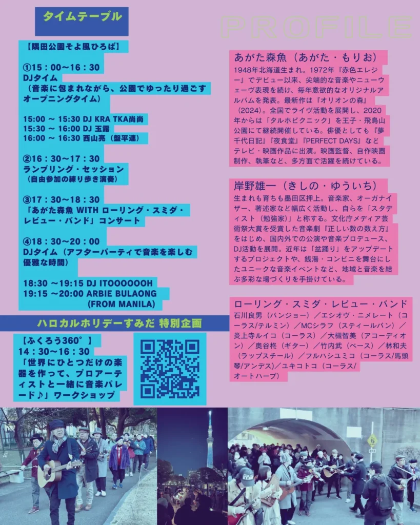 - 詳細はすみどこの公式HP、東京フェスタ・イベント情報の公式HP、すみだ経済新聞の公式HP、隅田公園パークセンターの公式HPをご覧ください。