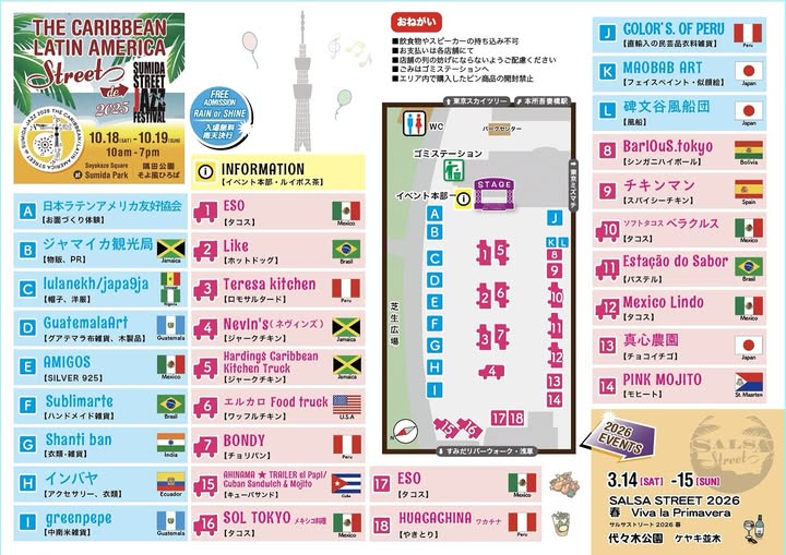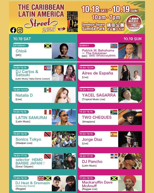 • 詳細はThe Caribbean Latin America Streetの公式HP、レッツエンジョイ東京の公式HP、すみだ経済新聞の公式HP、東京フェスタ・イベント情報の公式HPをご覧ください。