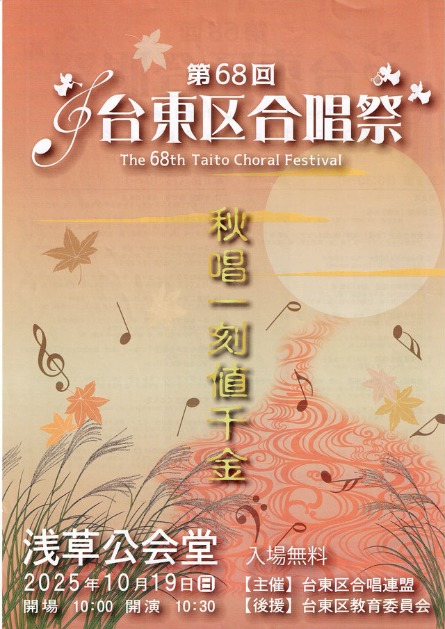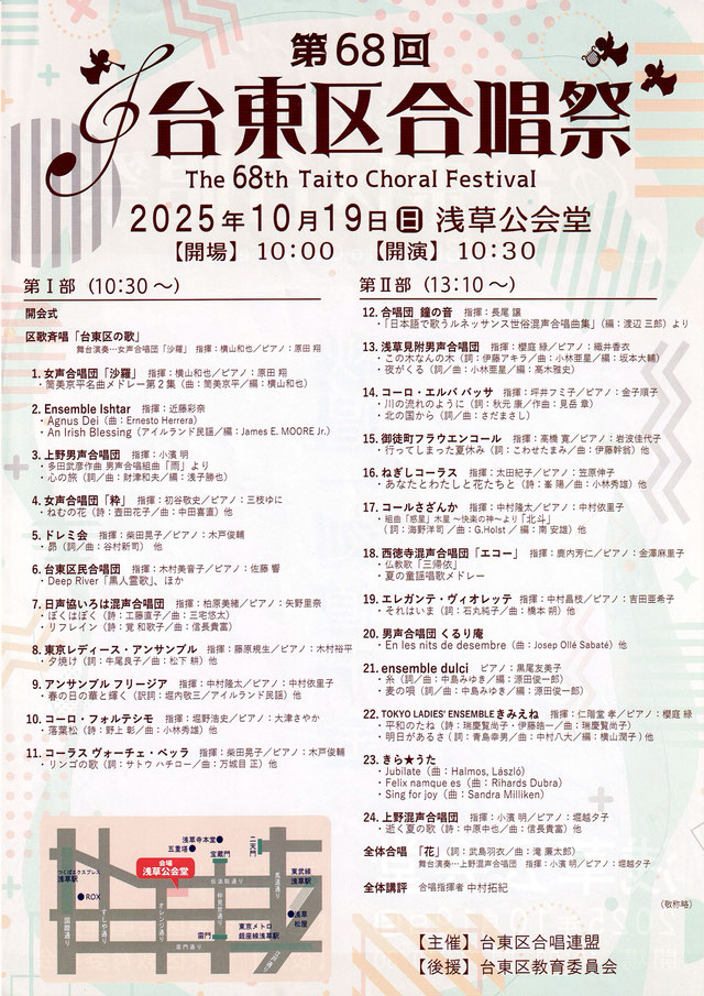 • 詳細は浅草公会堂の公式HP、台東区民合唱団の公式HPをご覧ください。