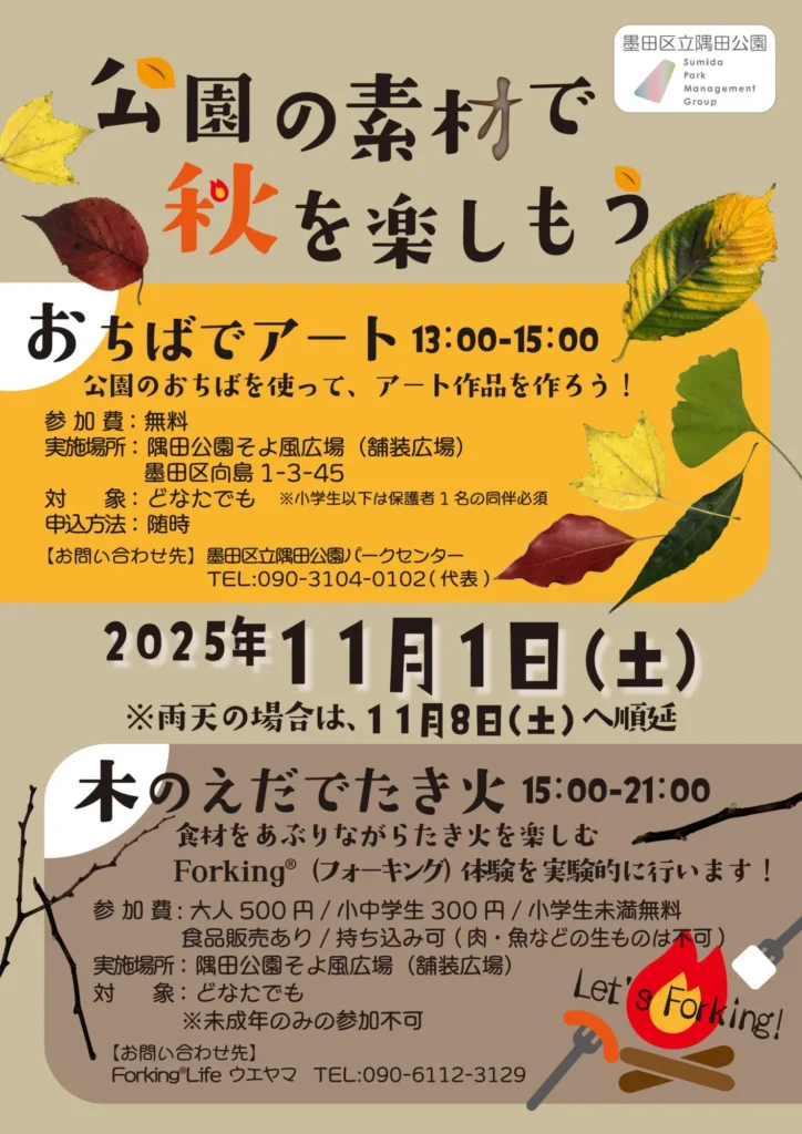 開催時間:11:00~17:00 開催場所:千束公園 開催期間:11/1(土)~11/2(日)