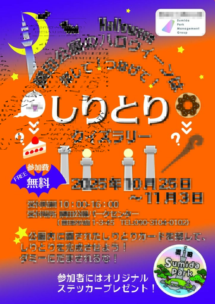 - 園内各所に隠されているハロウィンカードを探して、そこに描かれている絵でしりとりをしてみよう。