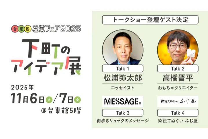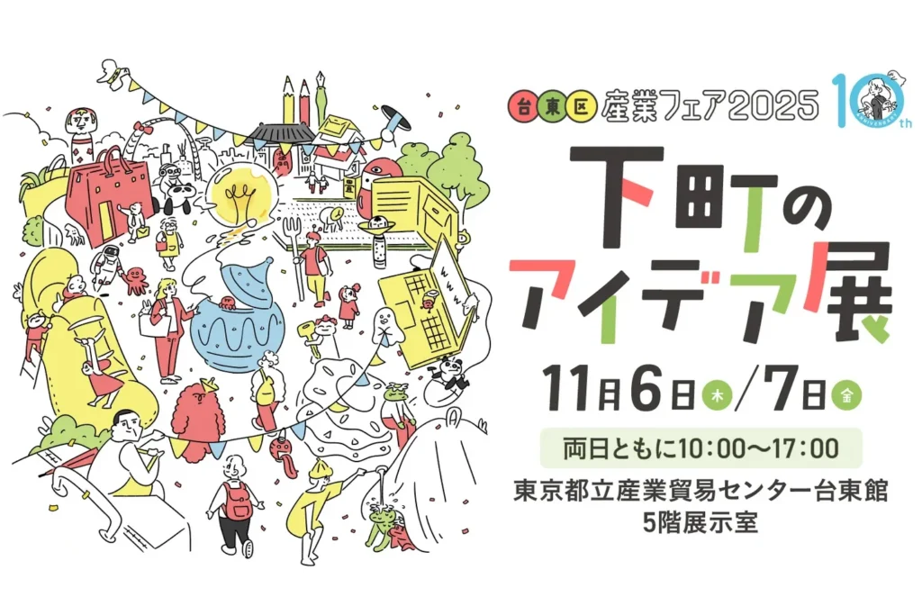 - 台東区産業フェア2025は、「下町のアイデア展」をテーマに、つながりから生まれるひらめきやワクワクをお届けする見本市。