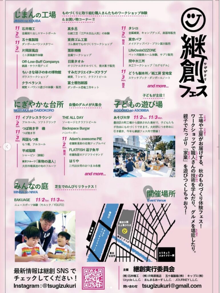 - 詳細は継創フェスの公式HP、すみだ経済新聞の公式HP、墨田区観光協会の公式HP、sumidaevent.comの公式HPをご覧ください。