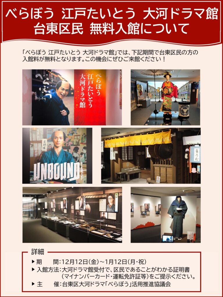 【大河ドラマ館】台東区民入館無料
