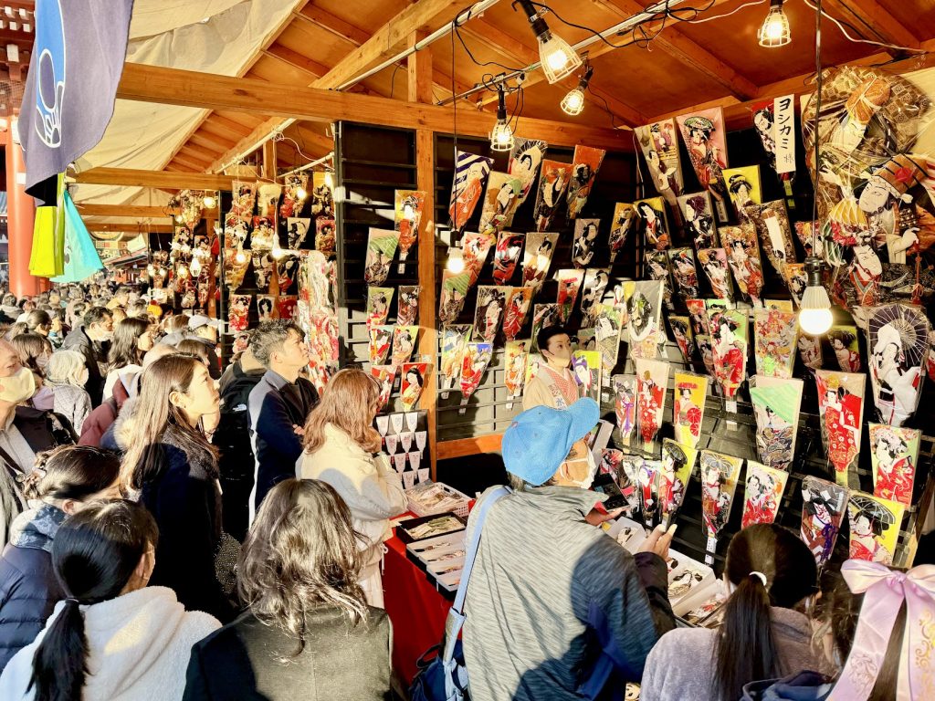 - 古くは毎年歳末に行われる浅草寺「歳の市」での正月用品や縁起物の販売に始まり、昭和25年頃には「羽子板市」として歳末の風物詩に定着しました。