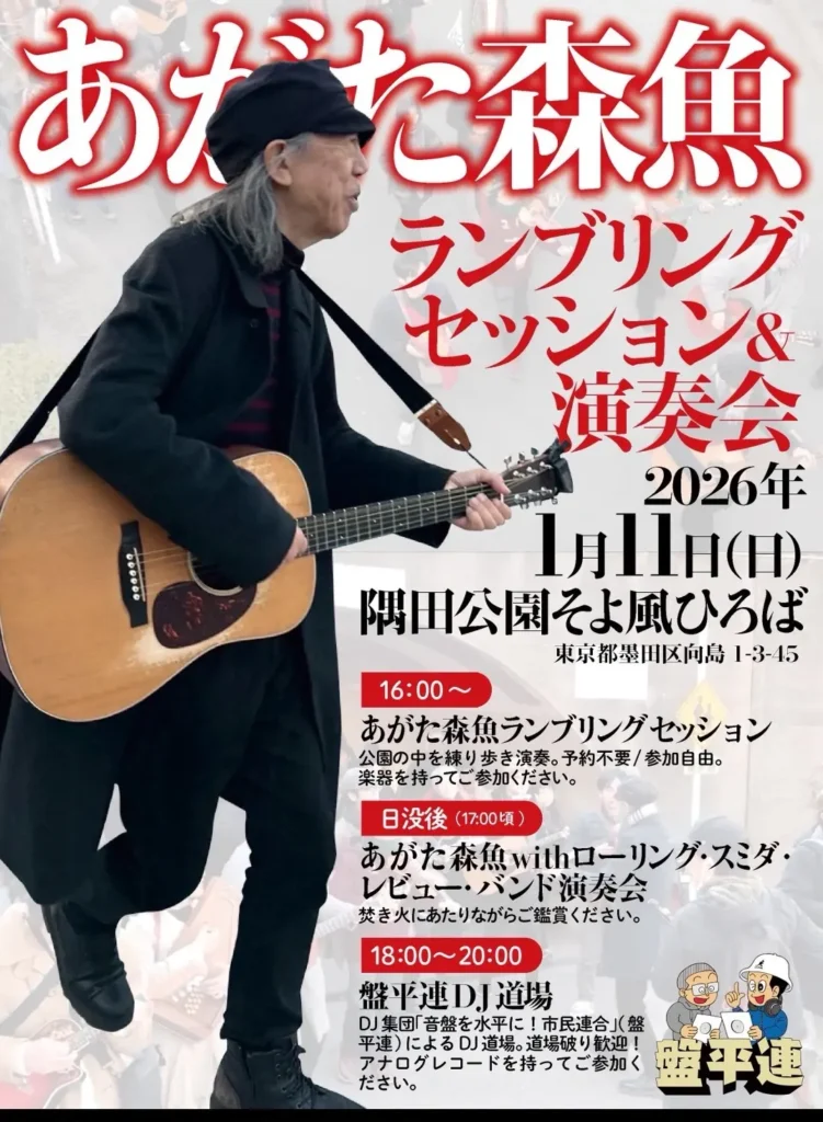 日没~(17:00頃予定):あがた森魚with ローリング・スミダ・レビュー・バンド・演奏会