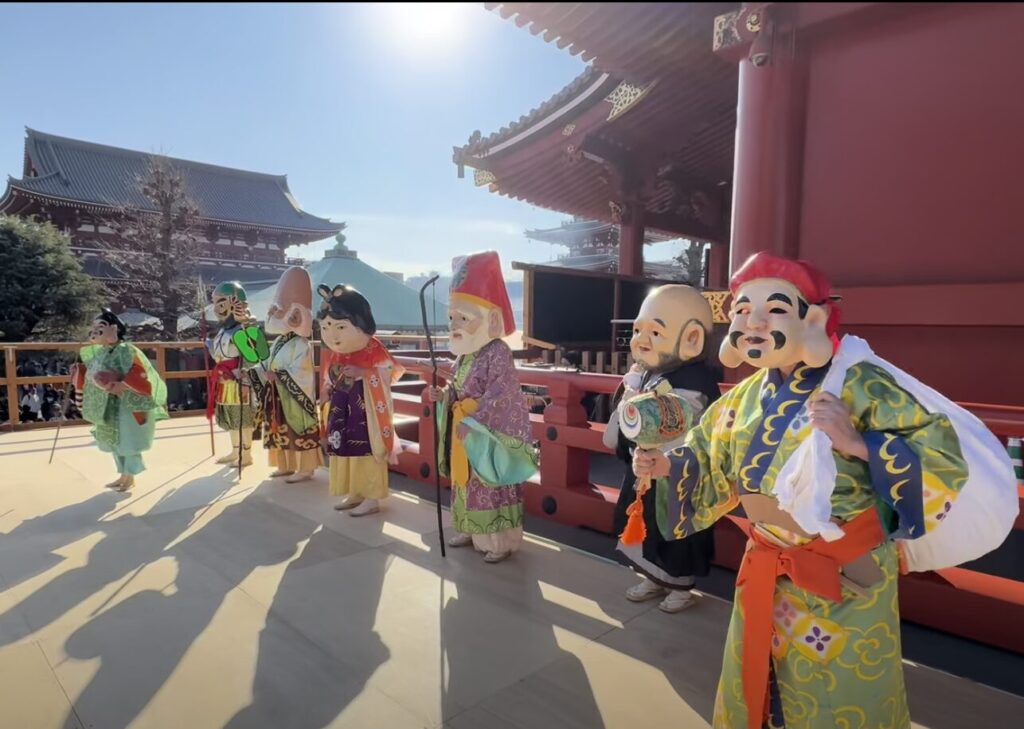 • 浅草寺三大寺舞のひとつ「福聚の舞(七福神の舞)」の奉演や浅草ゆかりの芸能人による豆まきなどが行なわれ、参拝者を楽しませています。