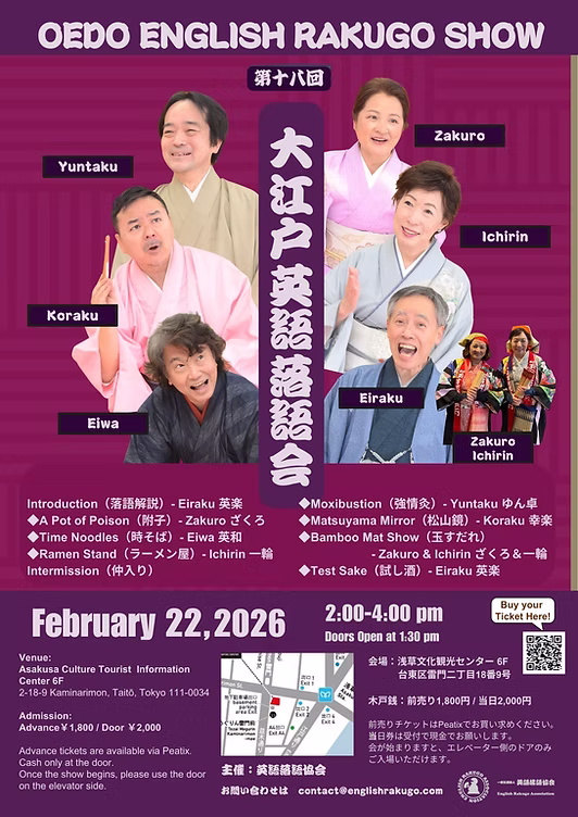 - 詳細は英語落語協会の公式HP、浅草文化観光センターの公式Instagramをご覧ください。