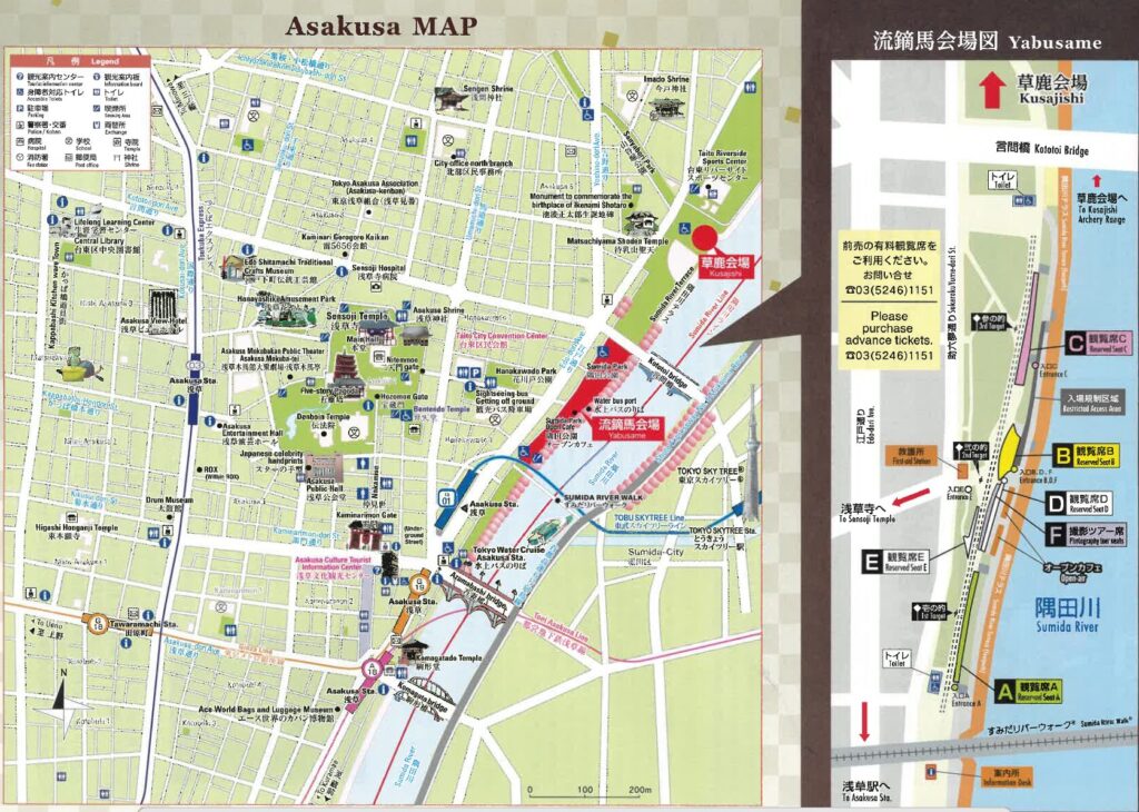 • 浅草流鏑馬は、江戸時代に浅草神社の正月行事であったものを、台東区が昭和58年に観光行事として復活させたものです。