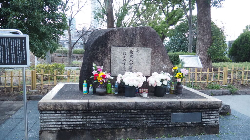 今日は13:00から隅田公園言問橋際の東京大空襲犠牲者追悼碑前で、東京大空襲追悼集会が開催されたようです。