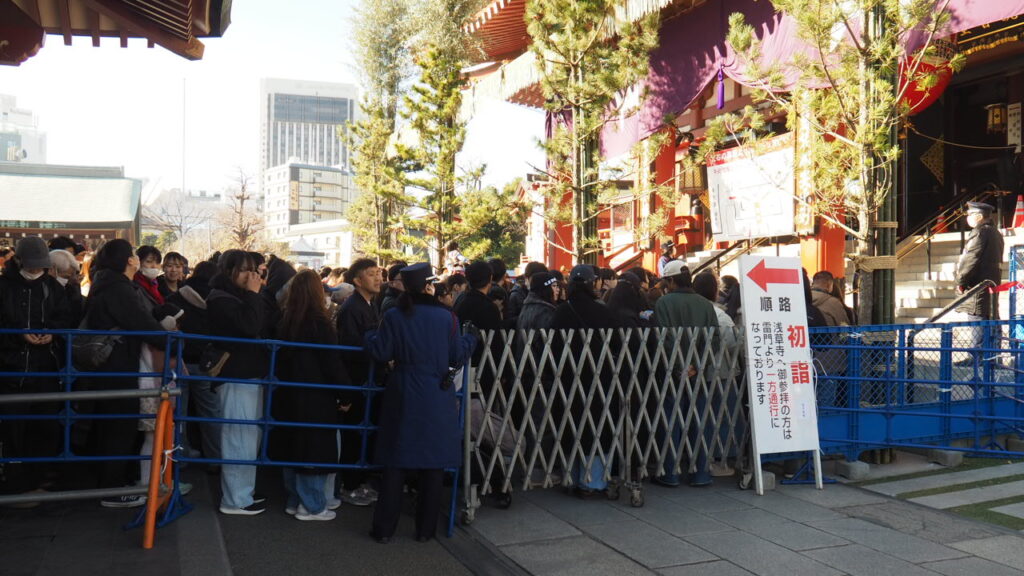 普段はないのですがお正月だけは柵が設置されていて、お参りの列は完全一方通行になります。