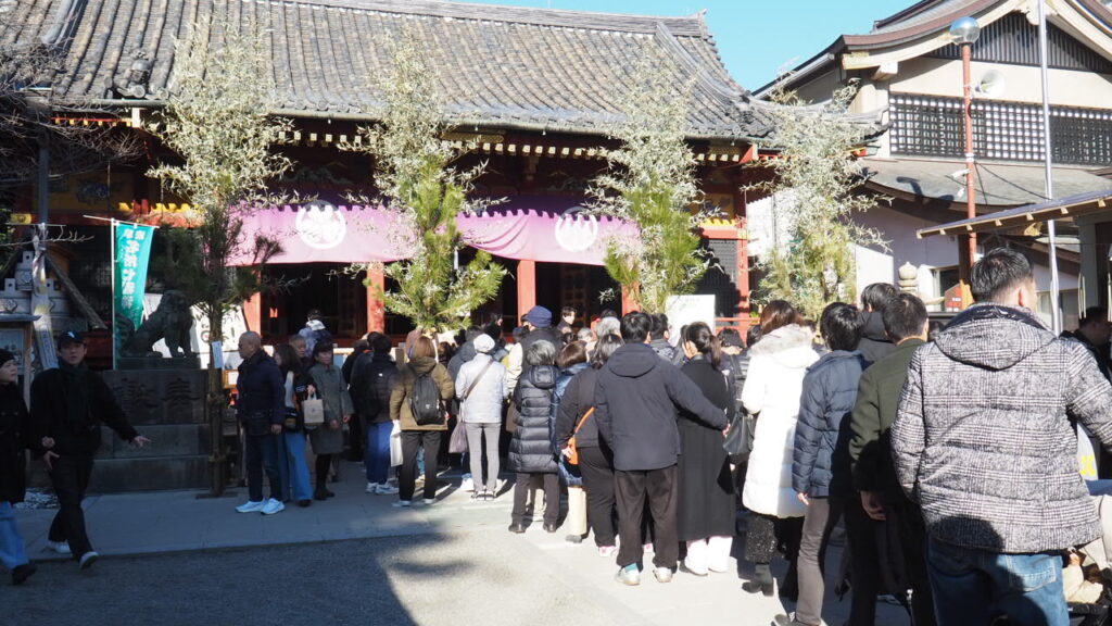 浅草寺ほどではないですが、普段とは比べ物にならないほどの参拝者が参道を埋め尽くしていました。